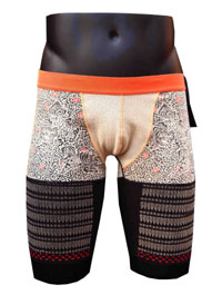 テキスト:もくじ/akiukazoku/index.text-000000.html 過去日記もくじ/akiukumo/A-0000index.html ■資料:話題の『甲冑パンツ』、そのこだわりに迫る (Excite Bit コネタ - 01月22日 10:11) ↑ 人気ナンバー1の「織田信長」モデル (左)こちらは「徳川家康」モデル。 (右)「武田信玄」モデル この記事を読んでいる男性の皆さんは「トランクス派」でしょうか、 「ブリーフ派」でしょうか、それとも「ボクサー派」なんでしょうか? 実は、これらの選択肢に加えていただきたい下着があるんです。 それは「甲冑派」! 昨年の12月13日にログイン株式会社から、 『甲冑パンツ 志道(しどう)』が発売されている。 このビジュアルにたまげた私は、 早速ログイン(株)の野木社長にお話をお伺いしてみました。 開発のキッカケは? 「もう単純に“勝負パンツ”ということです! よく巷で“勝負パンツ”と言われていますが、 どうもチャラいパンツが多いと思っていたんですね。 そこで、男の勝負をするためのパンツを考えまして。 今の不景気な世の中に何か新しい活力を発信したい! そのためには日本男児が頑張らなければあかん!! そう考えたとき、戦国武将しかないな、ということで 『甲冑パンツ』の開発に至りました」 この甲冑パンツ、なんと生地は包帯なのだ。 ログイン(株)は以前に『包帯パンツ』という、 包帯生地を使って伸縮性と通気性に富んだ下着を開発。 ユナイテッドアローズや伊勢丹新宿店等で販売し、好評を得ていた。 その包帯パンツに甲冑のデザインをプリントしたのが、 今回の『甲冑パンツ』。 この甲冑のデザインは、野木社長の元々のお知り合いで、 三陽商会やサンエーインターナショナル、 「渋谷109」など多くのブランドのチーフデザイナーを務めたこともあり、 日本舞踊の師範でもある大友千里さんが担当。 初めて画像だけを見たときに 「本当に甲冑で作ったパンツだ!」と勘違いしてしまったのだが、 それも大友さんのデザインの賜物だろう。 もう一つ苦労した点が、印刷。 包帯生地に甲冑のデザインがプリントされず、 「どうしたものか」と苦戦していたところ、 大友さんが連れてきたプリンターさんがその問題点をクリア! 「プリンターさんがいたから、この商品は成功しました」と、 皆さんの絆の結晶で完成されたパンツなのだ。 このパンツ、実は女性の購入者が多いという。 割合で言えば男女比5:5くらいだという。 最近になると女性購入者は6割くらいと、男性購入者を上回る勢い! 野木社長いわく、 「このくらいの価格の下着なら、自分ではなかなか買いませんから。 プレゼント用に購入される方が多いんだと思います。 女性がクリスマスやバレンタイン、あと今だったら“受験”ですよね。 お子さんの受験に向けてお母さんが “勝負パンツ”として息子さん用に購入されることも多いと思います」 まさに、“勝負パンツ”! また、デザインに惹かれて購入された方がリピーターになるケースも多い。 包帯生地のなんとも言えない肌触りが病みつきになり、 次回からは『包帯パンツ』を購入される方もいる。 よって、『甲冑パンツ』の販売により 『包帯パンツ』の売り上げが伸びるという、思わぬ相乗効果も。 包帯というと、どうも“涼しい”というイメージが持たれがちだが、 リピーターの方々の中には「包帯は冬は暖かい」ということがわかり、 真冬を包帯パンツで乗り切った人もいるとのこと。 「他のパンツより暖かい」と、寒い時はいつもはいている箱根神社の神主さんもいるとか。 そして、この『甲冑パンツ』、デザインも豊富なのだ。 12月の第一弾では 「井伊直政」、「徳川家康」、「森蘭丸」、「豊臣秀吉」モデルが発売。 1月末に発売される第二弾には、 「武田信玄」、「真田昌幸」、「伊達政宗」、「織田信長」モデルがある。 ちなみに一番人気は、ダントツで「織田信長モデル」。 紫のポイントが目を引くこのモデルは、 カタログを見た時点で誰もが「オッ!」と注目するほどの人気。 デザインも特筆ものだし、 そこに“織田信長”の名前がついてくるのだ。 人気が出ない方がおかしいだろう。 今後の開発予定商品として、 第3弾「天地人」直江兼続、上杉謙信モデルが控えている。 また第一弾、第二弾のショートボクサーバージョンも予定。 ちなみに価格は一律8,800円(税抜き)なのだが、 デザインによって原価は全然違うという。 だが、野木社長の「そんなん、ええやろ!」という心意気で、一律価格を決行。 「儲け度外視です」(野木社長)という、価格も勝負しているパンツである。 野木社長が自ら「ワガママで作っているんで」という商品なのだが、 こんなワガママなら我々も大歓迎(笑)。 伊勢丹メンズ館、三越日本橋本店、東急東横店などで販売されている、 この“男の勝負パンツ”。 勝負どころを控えたアナタは、是非! (寺西ジャジューカ) 【コラム】 股間のポジション問題をまじめに考えた http://news.mixi.jp/view_news.pl?id=727729&media_id=29&m=1&ref=news%3Aright%3Aaccess 男と女の悩みを解決